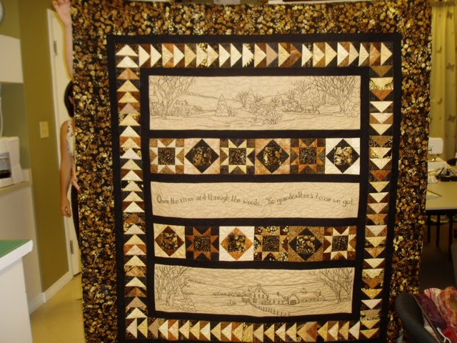 This is a great quilt with allot of hand stitching. Sharon you did a great job and I loved to quilt it for you. I hope you can zoom in on this picture so you can see the details.